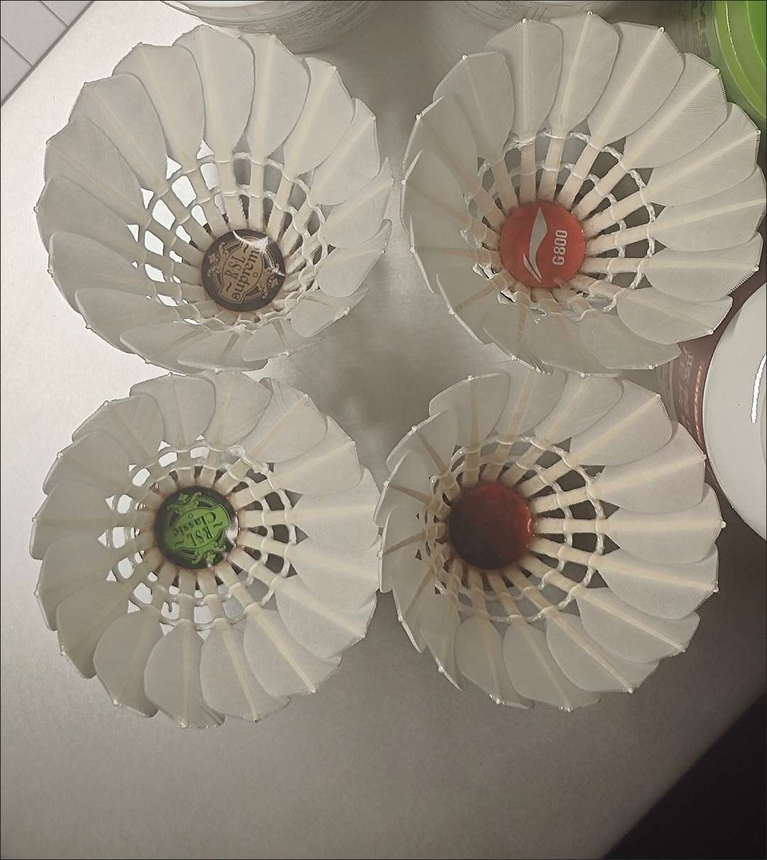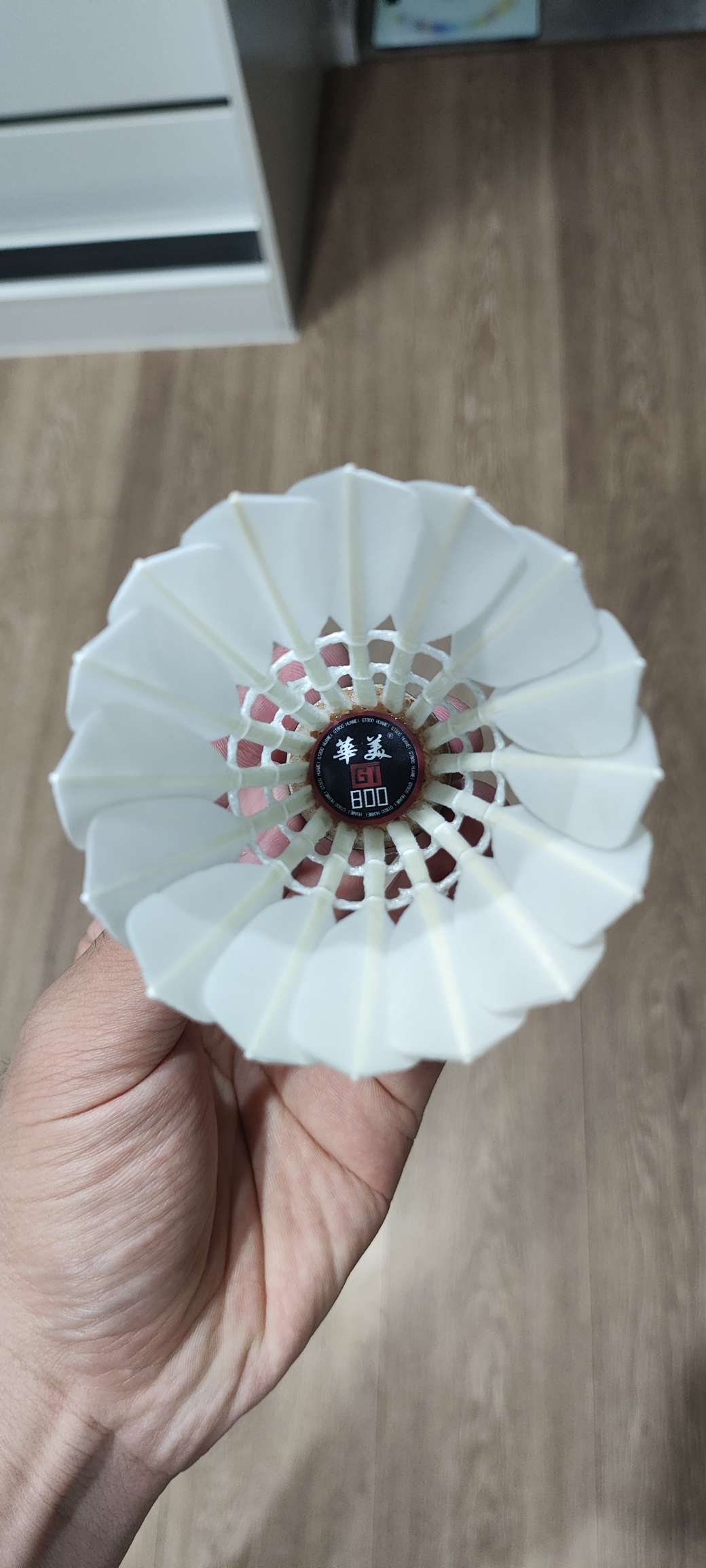 羽毛漂亮,我手上这一桶都没有瑕疵 让我震惊的是胶水味道和红超至少有八成 就是红超特有的可乐味,甜甜的 耐打的话,gt800更好,球头标有的会掉,后期厂商可能会改善 打感比红超轻一点,但也很扎实...