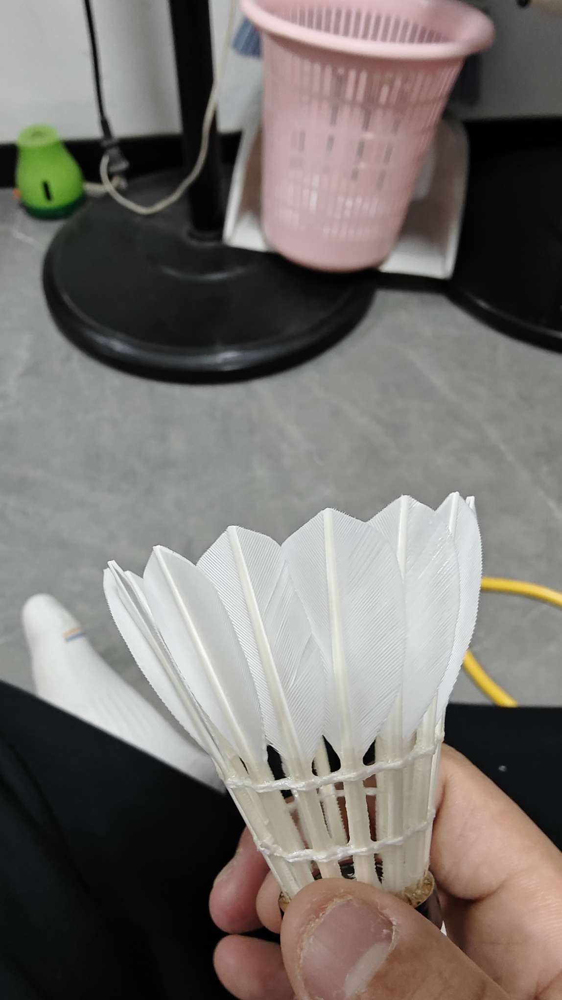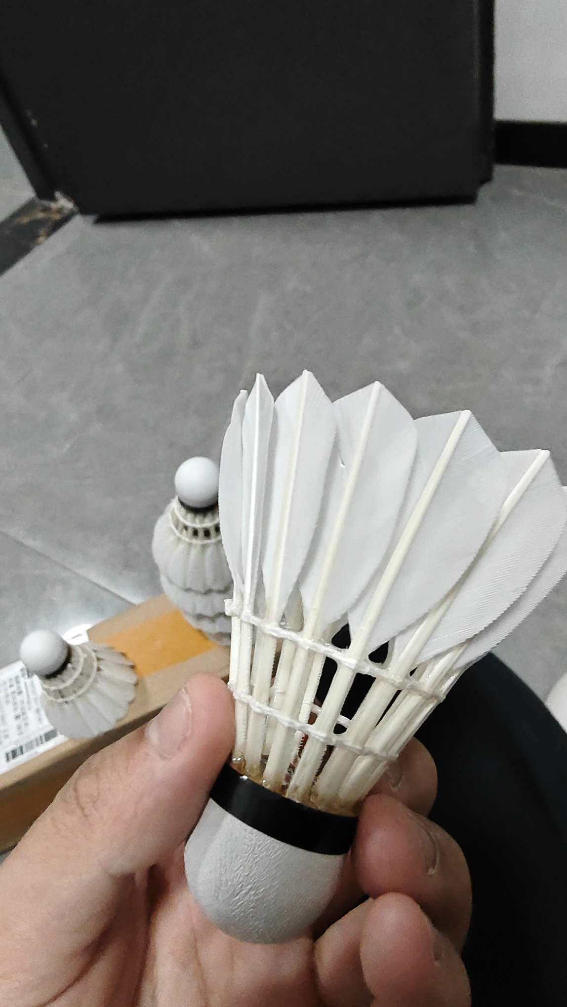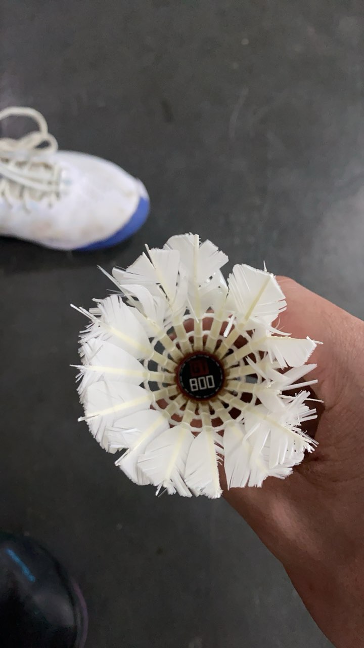 外观:一级鹅刀翎,羽毛无瑕疵 飞行:一桶12个球未见明显摇摆,个别有轻微摇摆不影响 耐打:图一为4~5级水平四场单打的状态,打到最后有一根断毛,非常满意 特点:球头硬度不高,基本一场单打后球...