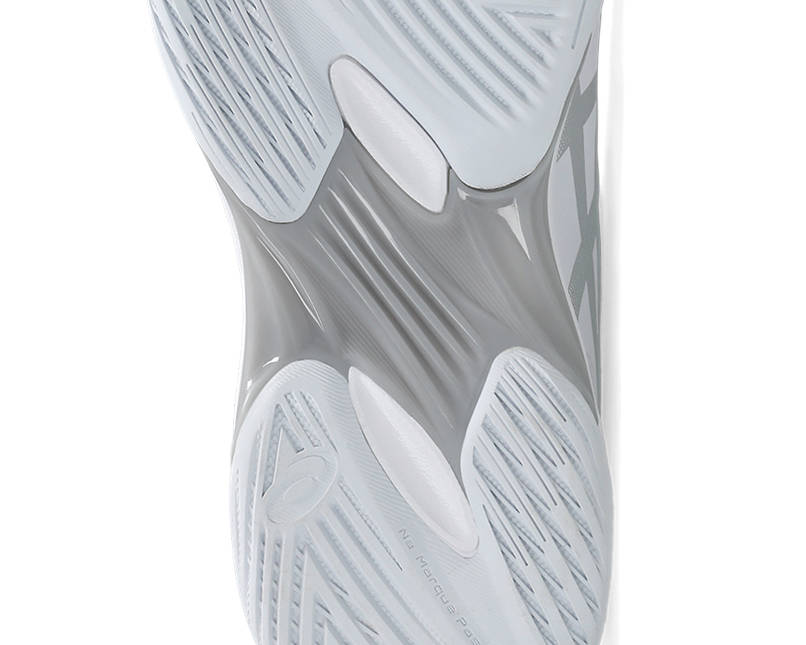 11 代通过放射状纹路与弯曲凹槽实现基础灵活性,12 代则新增 “前掌单圆形凹槽设计”—— 以单一凹槽精准定位脚步发力点,搭配水平及对角线底纹,蹬地瞬间的 “助推感” 更明显。网前扑球、快速切换步法时,鞋底弯曲更贴合足部自然轨迹,急停时的 “刹车感” 比 11 代更利落,防滑性能适配木地板、塑胶等多种室内场地。